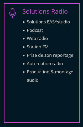 La société Europa Broadcast est à même de proposer tout type de solution que ce soit pour une radio locale, une station régionale ou pour tout un réseau à couverture nationale.