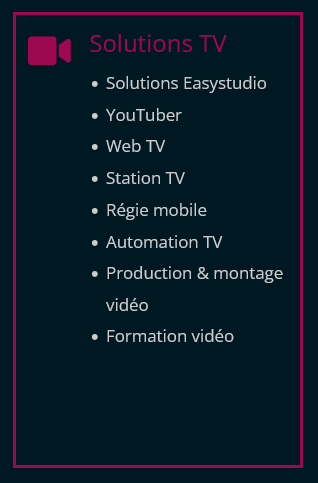 – Broadcast Solutions pour les systèmes radio et de télévision clés en main.